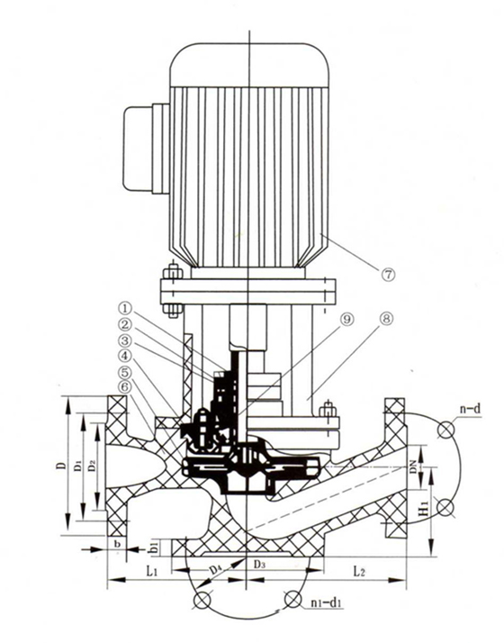1 軸 2 軸套 3 機械密封 4 泵蓋 5 葉輪 6 泵體 7 電機 8 聯(lián)接架 9 密封壓蓋