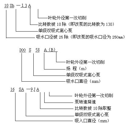sh/S/SA雙吸中開(kāi)離心泵型號意義: