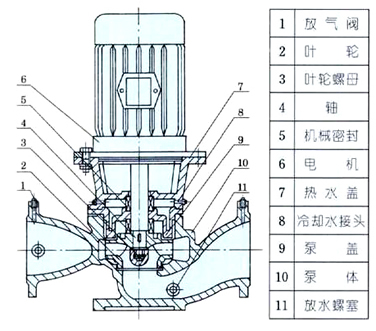 1、泵為立式結構,進(jìn)出口口徑相同,且位于同一中心線(xiàn)上,可象閥門(mén)一樣安裝于管路之中,外形緊湊美觀(guān)、占地面積小、建筑投入低,如加上防護罩則可置于戶(hù)外使用。