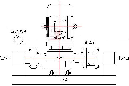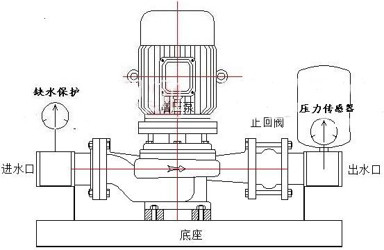 立式單級管道式自動(dòng)增壓泵:增壓泵采用鑄鐵GD型立式單級管道式離心泵,管路部分則默認采用鋼塑管。