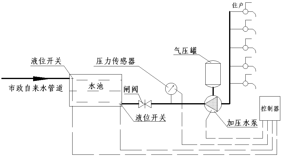 壓差式(非變頻)全自動(dòng)管道增壓泵系統示意圖