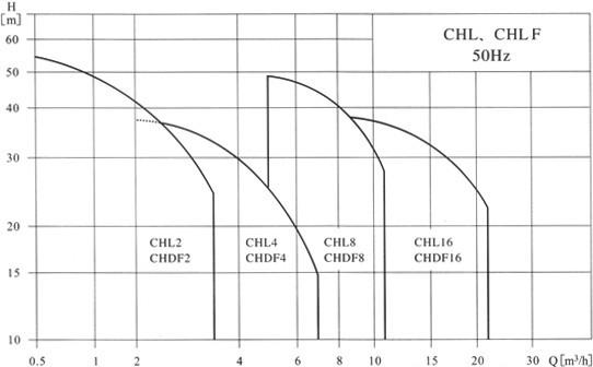 ■ CHL型不銹鋼臥式輕型多級離心泵性能曲線(xiàn)圖:
