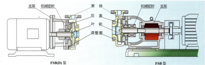 IHF型襯氟塑料離心泵的泵體采用金屬外殼內襯聚全氟乙丙烯(F46)、葉輪和泵蓋均采用金屬嵌件外包氟塑料整體燒結壓制成型,軸封采用外裝式波紋管機械密封,靜環(huán)選用99.9%氧化鋁陶瓷或碳化硅,動(dòng)環(huán)采用四氟填充材料或碳化硅。其特點(diǎn)是該泵結構先進(jìn)合理,耐腐蝕強,密封性能?chē)烂芸煽,工作穩定,噪聲低,使用壽命長(cháng)。