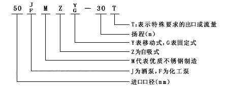 ■ JMZ、FMZ型移動(dòng)式防爆酒精泵,防爆衛生食品泵,防爆輸藥泵,酒精卸車(chē)泵,防爆自吸乙醇泵型號意義: