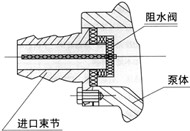 5.自吸泵的進(jìn)口束節重裝時(shí),請注意阻水閥應向正面,以便與阻水閥正面貼合保證白吸效果(見(jiàn)右下圖)。
