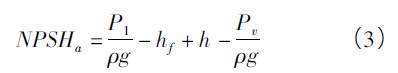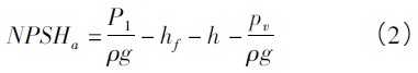 有效汽蝕余量(NPSHa),也即裝置汽蝕余量,是指泵所在裝置(或系統管路)所具有的汽蝕余量,其大小由吸入管路系統參數、安裝高度和管路中流量等決定的,與泵的結構無(wú)關(guān)。該參數越大,泵越不容易汽蝕。式(1) 經(jīng)轉化可求出吸上或倒灌條件下的裝置汽蝕余量。