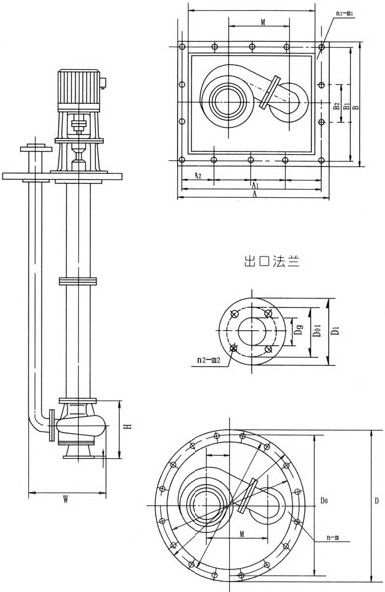 FYB型不銹鋼防爆液下泵結構安裝尺寸圖