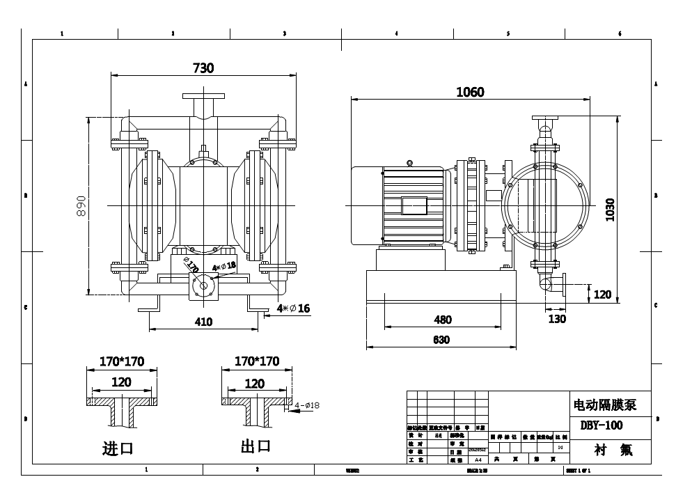 DBY-100臥式襯氟電動(dòng)隔膜泵安裝尺寸圖: