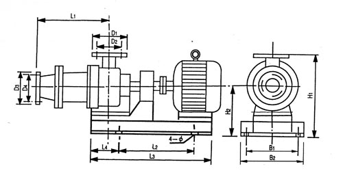 I-1B系列單螺桿濃漿泵由電動(dòng)機、聯(lián)軸器、泵和底座四個(gè)部分組成(見(jiàn)附圖)。