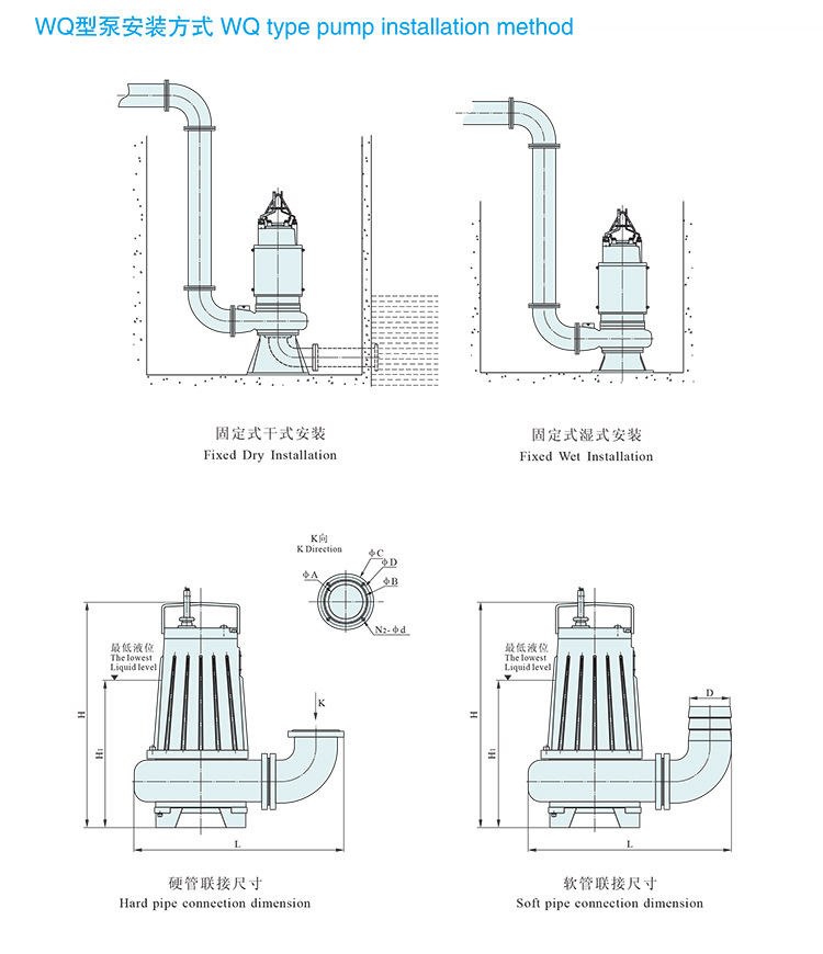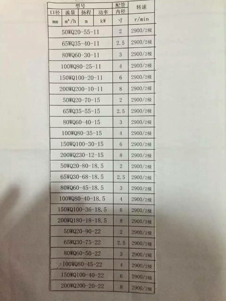 WQ高揚程潛水排污泵選用二級電機揚程可達100米