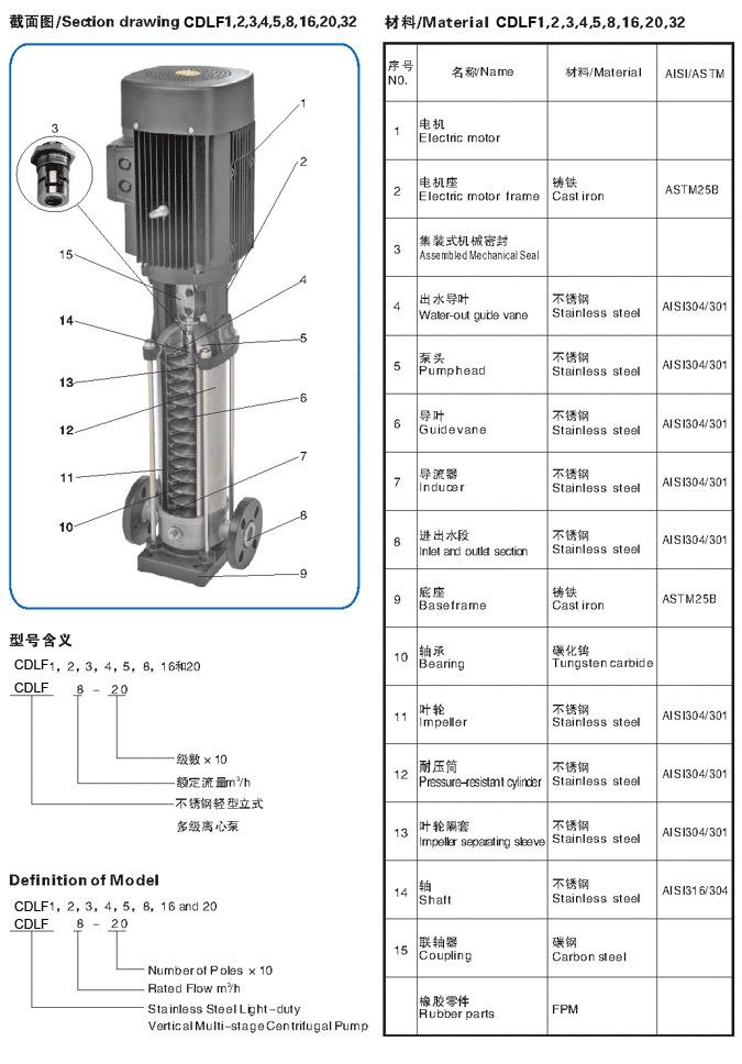 CDLF輕型不銹鋼立式?jīng)_壓多級泵零件拆解實(shí)物圖