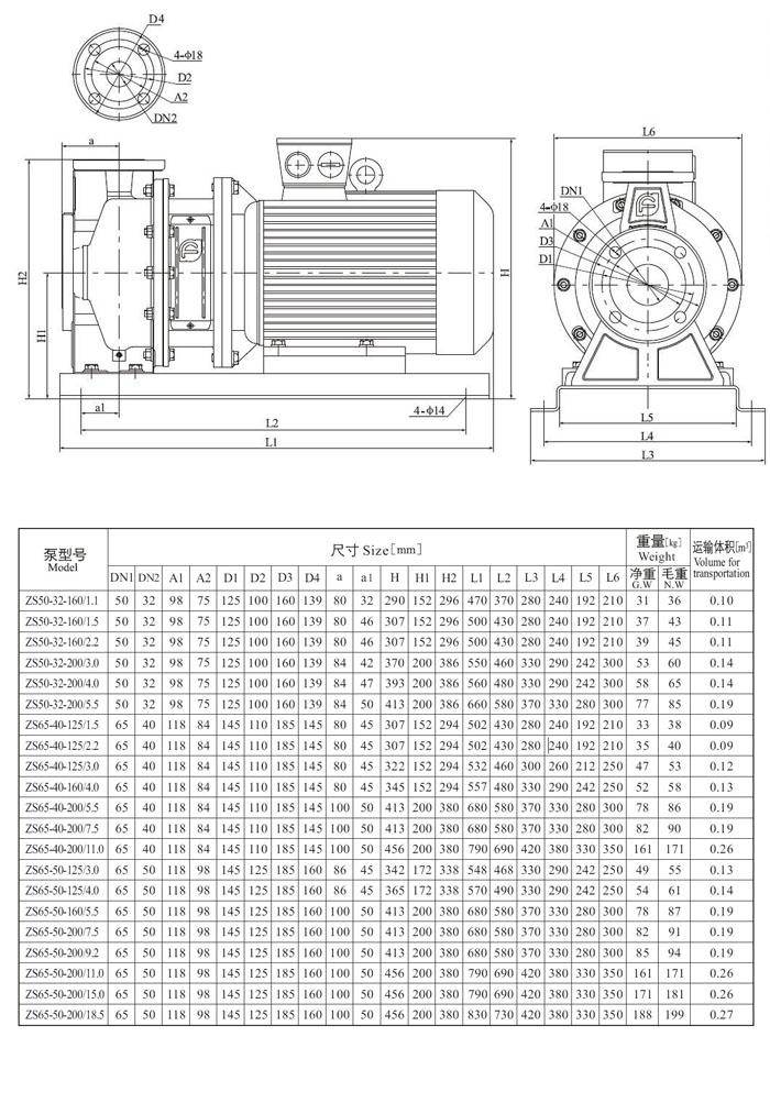 ZS型不銹鋼臥式單級離心泵(安裝尺寸)