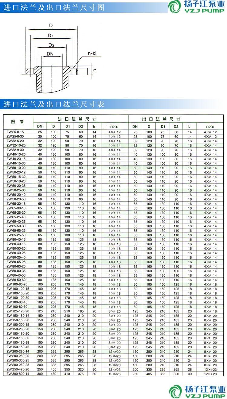 ZW型自吸式無(wú)堵塞排污泵(法蘭尺寸)