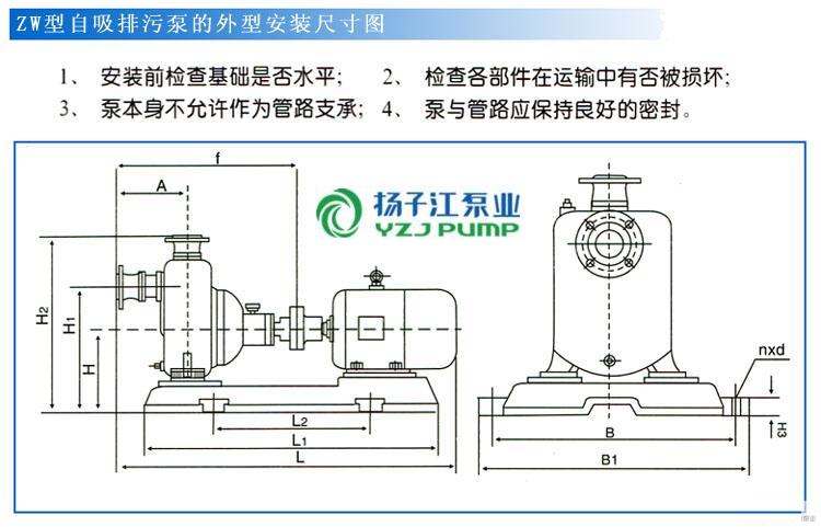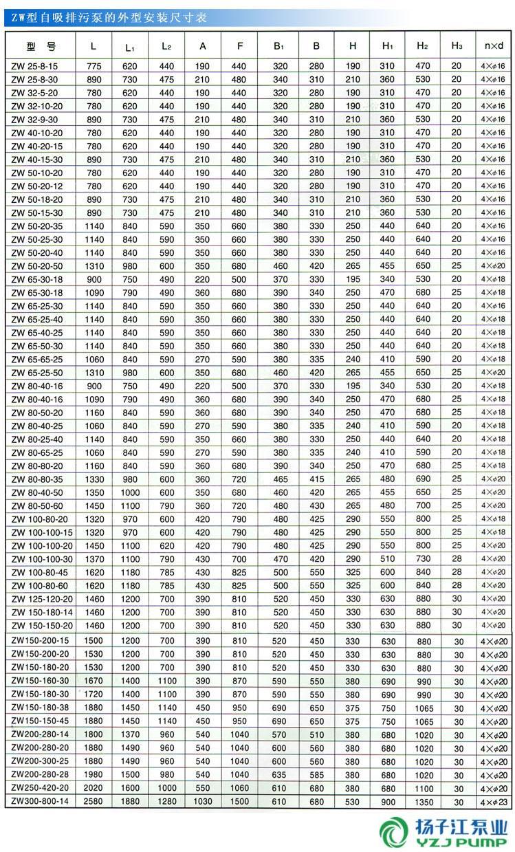 ZW型自吸式無(wú)堵塞排污泵(安裝尺寸)