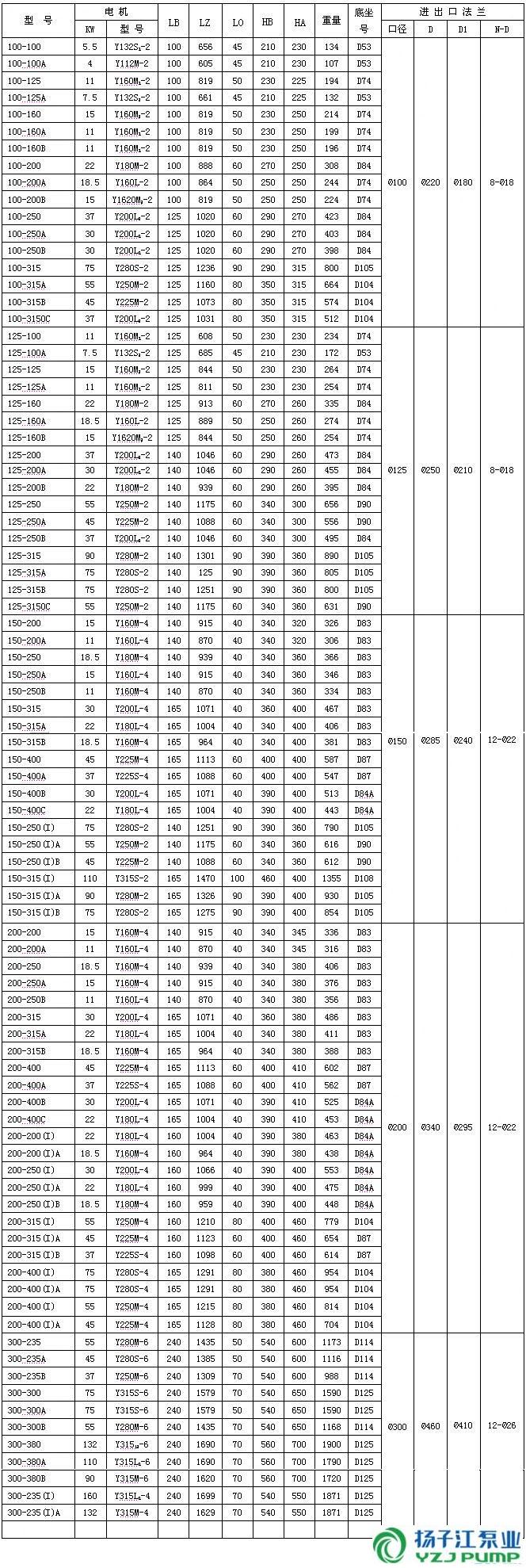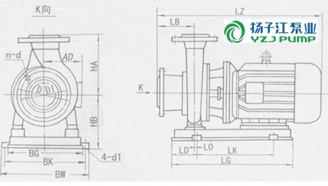 ISW型臥式管道離心泵(安裝尺寸)