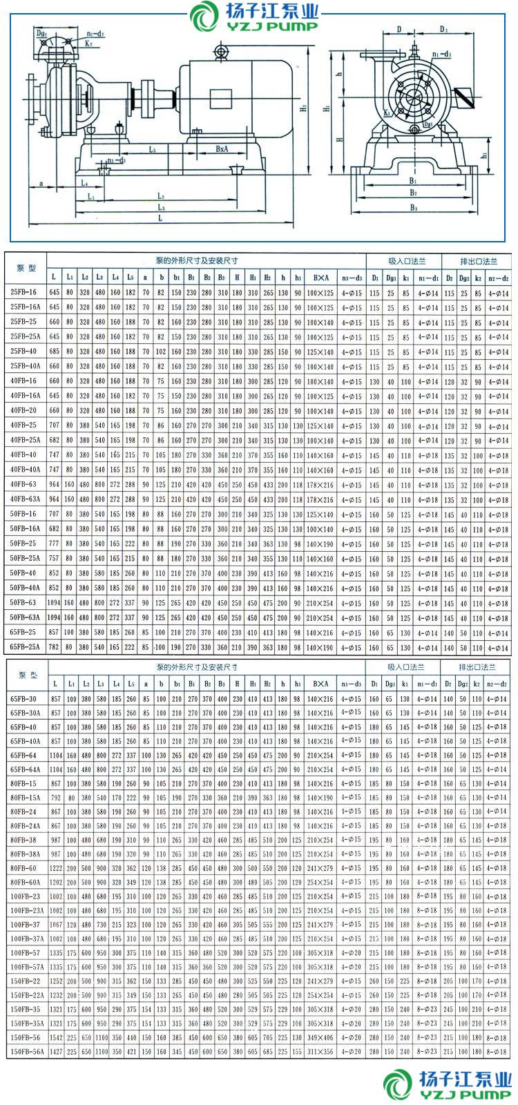 FB、AFB型耐腐蝕離心泵(安裝尺寸)