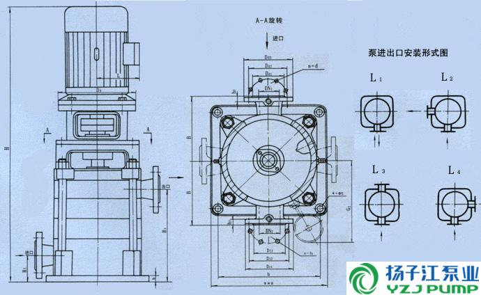 LG型高層建筑多級給水泵安裝尺寸圖: