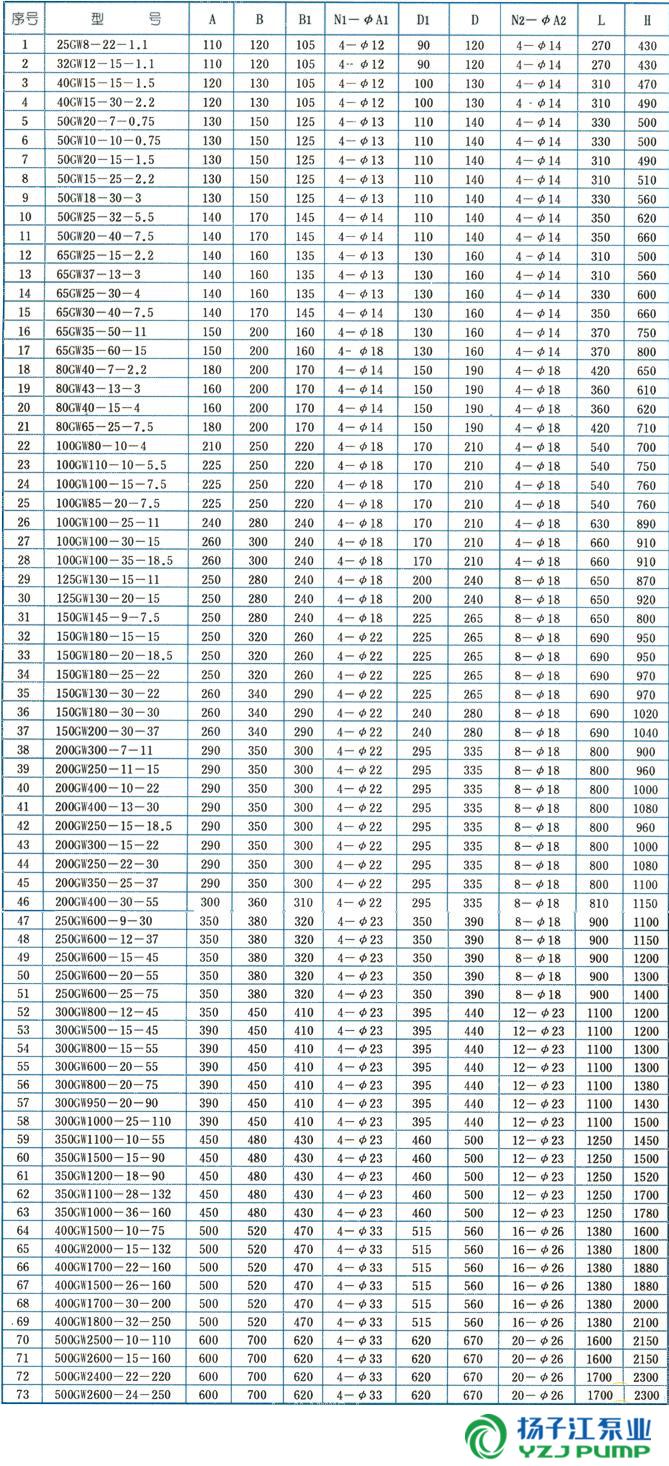GW型管道式無(wú)堵塞排污泵(安裝尺寸)