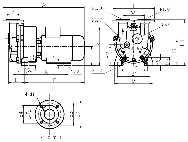 2BV5水環(huán)真空泵外形尺寸
