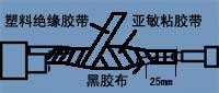 | 1:先用普通黑膠布對纏繞部分包扎兩層,包扎要緊。 2:亞敏粘膠帶(黑色)包扎三層,每包扎一層用手擠壓一次,保證包扎質(zhì)量。 3:后用塑料絕緣帶包扎兩層即可。 |