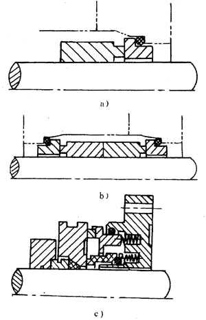 a)單端面式;b)軸向雙端面式;c)徑向雙端面密封
