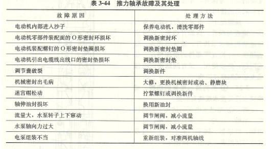 查明原因,對電動(dòng)機進(jìn)行維護保養。表3-44推力軸承故障及其處理