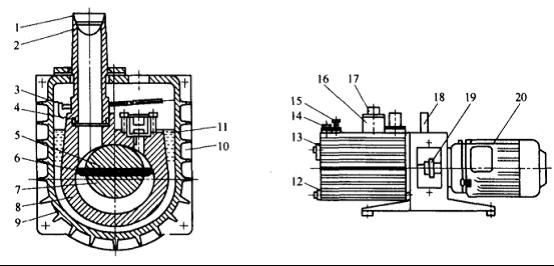 7-轉子;8-定子;9-油箱;10-真空泵油;11-排氣閥門(mén);12-放泊螺塞;