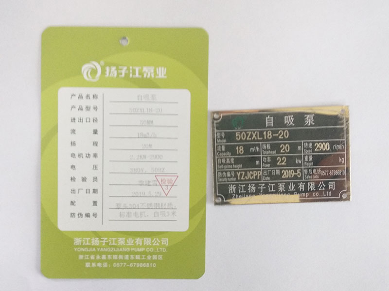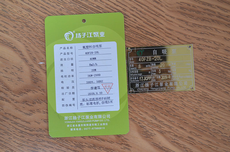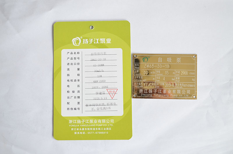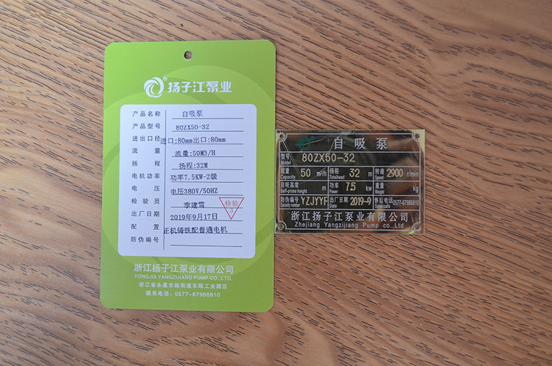 自吸泵產(chǎn)品合格證_浙江揚子江泵業(yè)有限公司