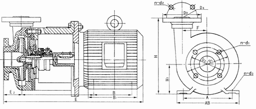 PF(FS)型系列化工泵為直聯(lián)式結構,由泵體及托架與電機法蘭聯(lián)接,托架支承泵體,葉輪通過(guò)軸與電機直聯(lián)。該系列泵的特點(diǎn):結構簡(jiǎn)單緊湊、零件少、性能好。泵的旋轉方向,自吸入口向電機方向看為順時(shí)針?lè )较蛐D,泵出口垂直向上。    泵的密封,選用聚四氟乙烯(F4)波紋管,外裝式耐腐蝕機械密封。