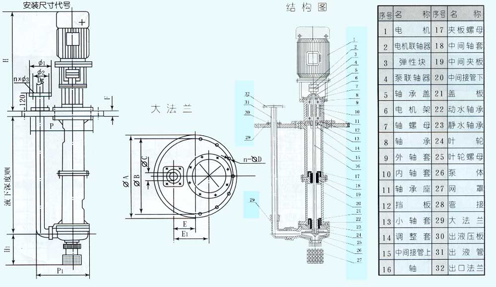 3、FYS型氟塑料液下泵更換流動(dòng)軸承則底板不動(dòng),只要卸去電機及相應支架,卸去泵聯(lián)軸器、壓蓋、圓螺母,取也軸套體。