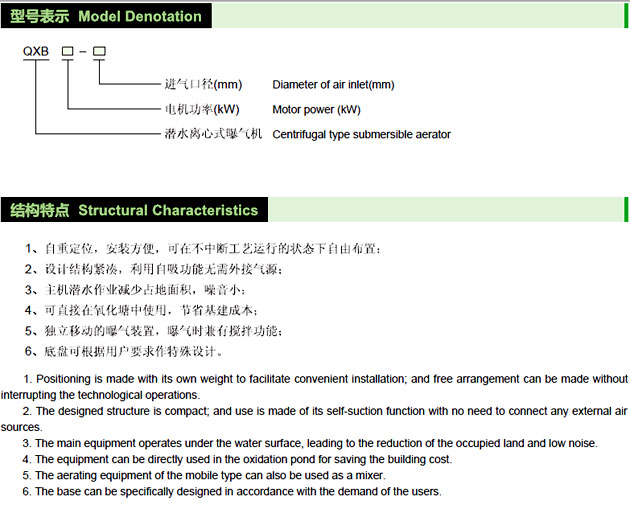 QXB型潛水離心式曝氣機型號說(shuō)明