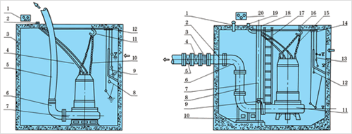 JYWQ自動(dòng)攪勻潛水排污泵安裝方式示意圖