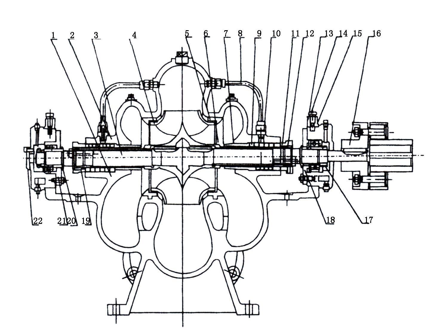 單級雙吸中開(kāi)泵結構圖