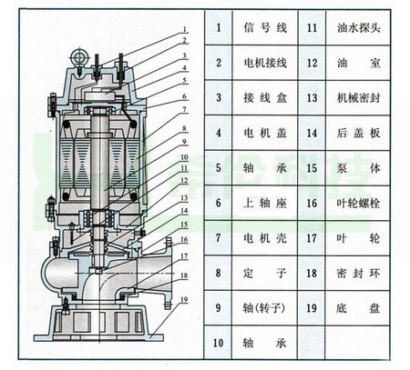 WQ型系列無(wú)堵塞潛水排污泵解剖圖: