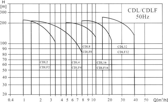 CDLF型立式不銹鋼多級離心泵性能圖譜