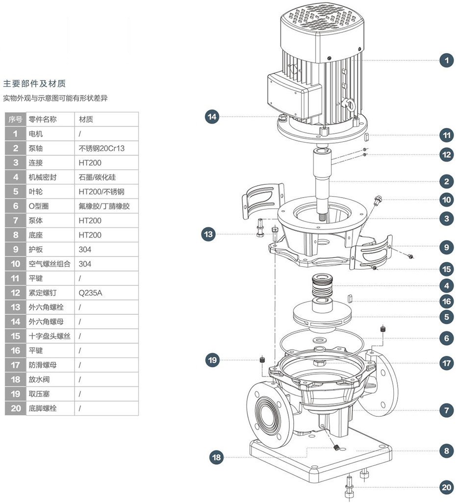 2、葉輪直接安裝在電機軸上,從而保證泵的同心度,因而增強了泵的運行穩定性和延長(cháng)泵的使用壽命。
