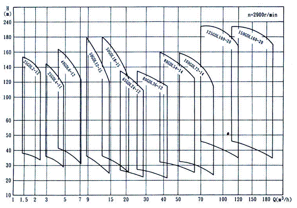 GDL系列立式多級管道離心泵曲線(xiàn)圖譜
