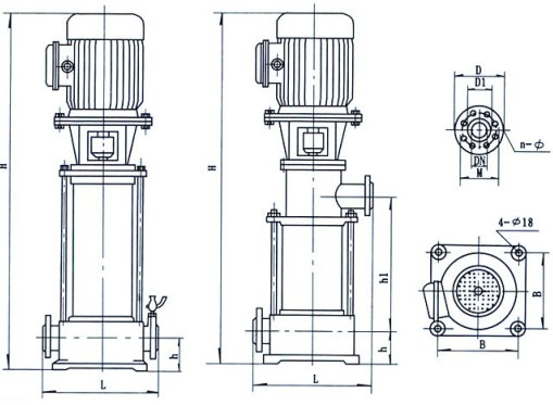 GDL系列立式多級管道離心泵安裝尺寸圖