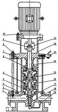 4、應先用手盤(pán)動(dòng)GDL型立式多級泵幾圈以使潤滑水進(jìn)入機械密封端面;