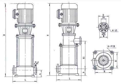 GDLF型立式不銹鋼多級離心泵安裝尺寸圖